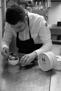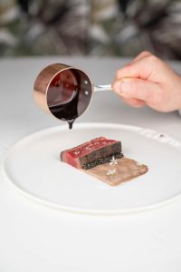« Nos deux domaines ont souhaité appuyer leur confiance lors d’une soirée d’exception » évoque Laurent DEVERLANGES PDG-Fondateur de Caviar de Neuvic. Aux commandes de cette table gastronomique de haute renommée, le jeune chef Matthieu Pasgrimaud, récemment distingué par l’étoile.