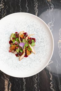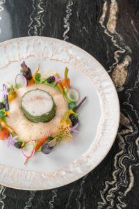 Je décrirais ma cuisine comme étant principalement féminine, peu axée sur les matières grasses, plutôt légère, mettant en avant les produits de saison et les ingrédients locaux. Cependant, elle se distingue également par sa créativité, puisque j’aime explorer des formes originales et mélanger diverses saveurs pour offrir une expérience gustative unique.