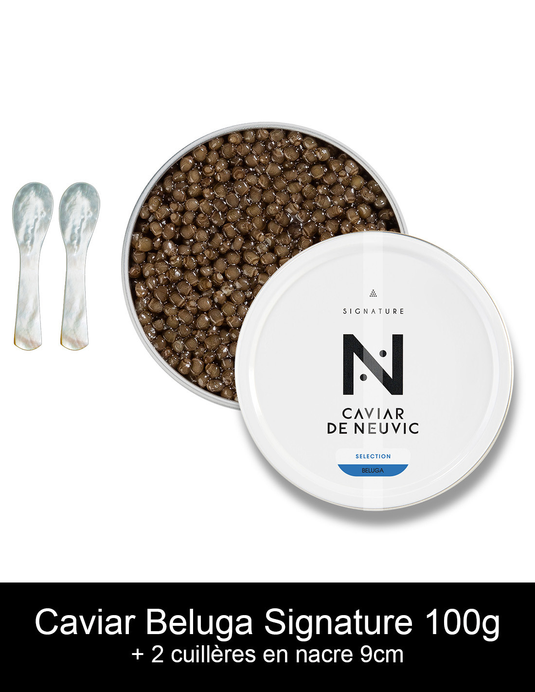 Grâce à un partenariat exclusif avec une ferme piscicole en Bulgarie, Caviar de Neuvic vous propose ce caviar Beluga exceptionnel. Le caviar Beluga est issu de l’esturgeon Huso Huso. Élevé au milieu d’un lac de retenu alimenté par la fonte des neiges, cet espèce d’esturgeon peut atteindre plus de 100 kilos à 20 ans. Son grain est le plus gros de tous les caviars. Son goût est puissant et la texture des grains est crémeuse. Sa couleur varie dans une nuance de gris clair.
