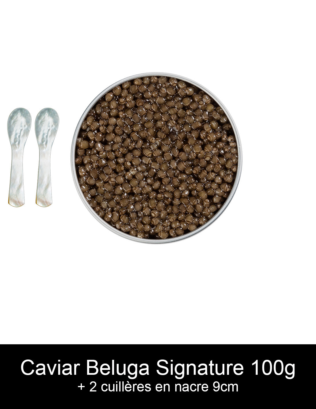 Les cuillères en nacre sont comprises dans l’offre pour apprécier pleinement la finesse et la délicatesse du caviar.