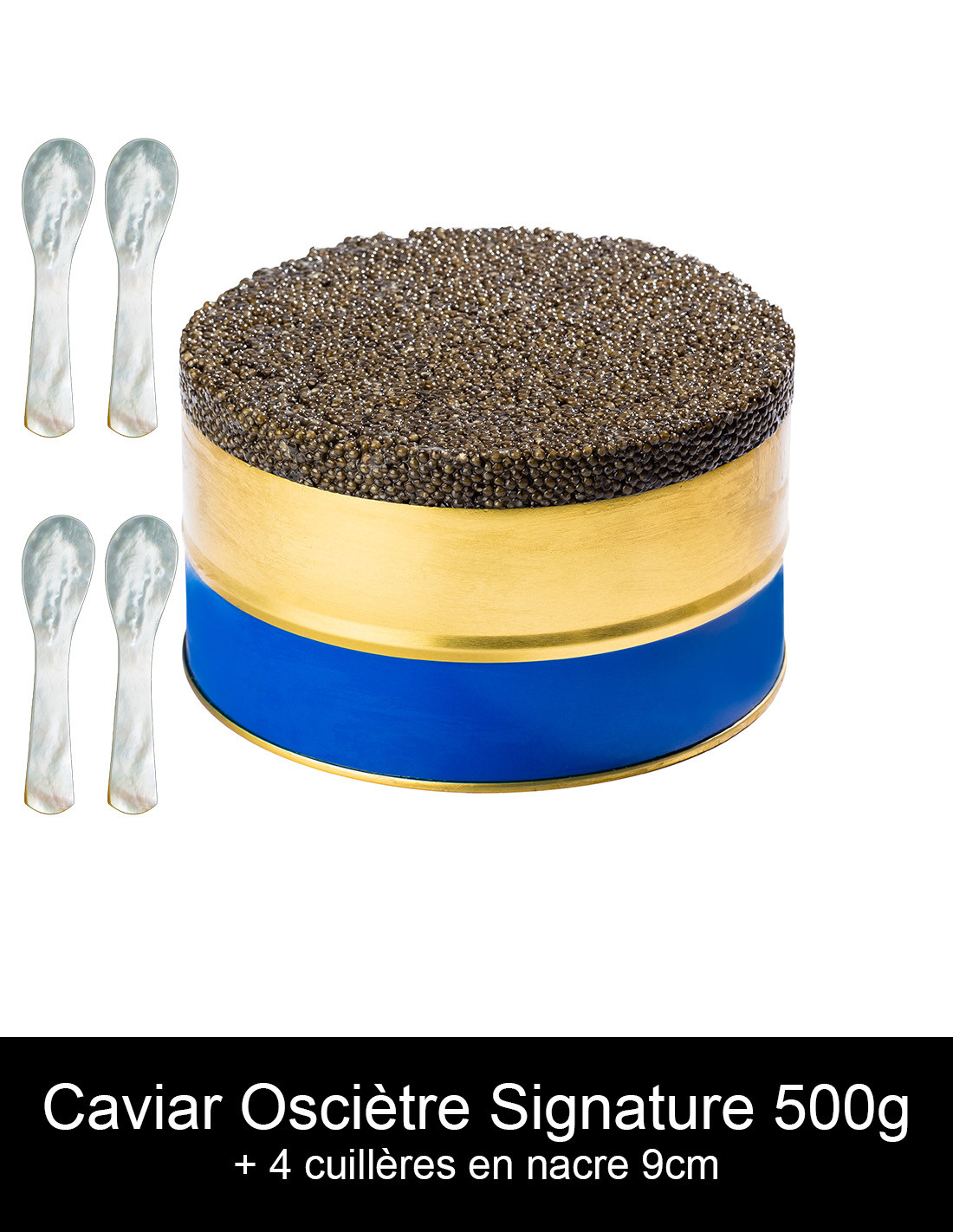 Les cuillères en nacre sont comprises dans l’offre pour apprécier pleinement la finesse et la délicatesse du caviar.