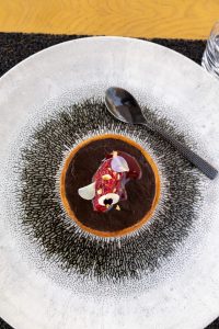 Chocolat et piment d’espelette, caviar de framboise