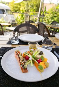 Installez-vous sur notre terrasse ensoleillée ou dans l’ambiance paisible du restaurant, et laissez-vous porter par une cuisine de saison.
