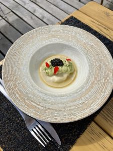 Raviole d’esturgeon fumé et sa purée de brocolis